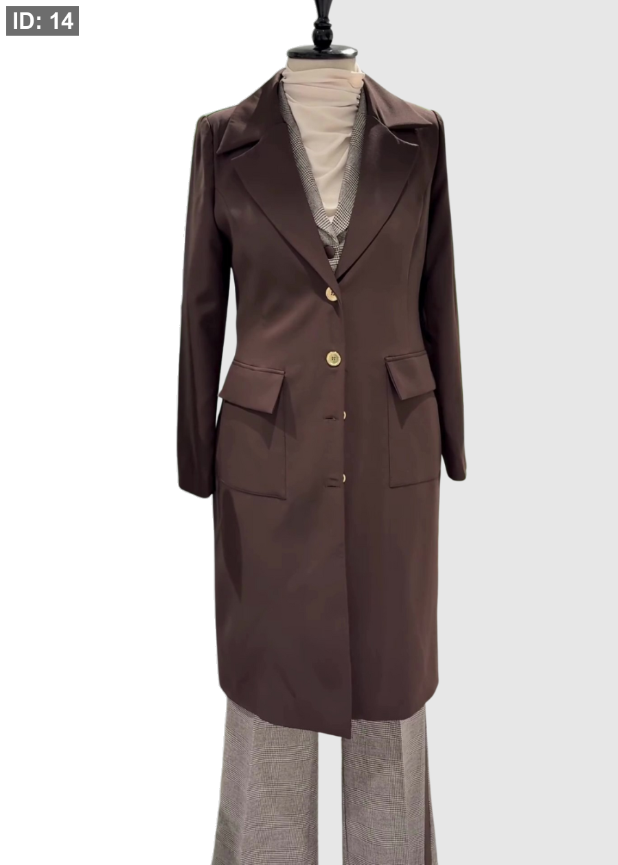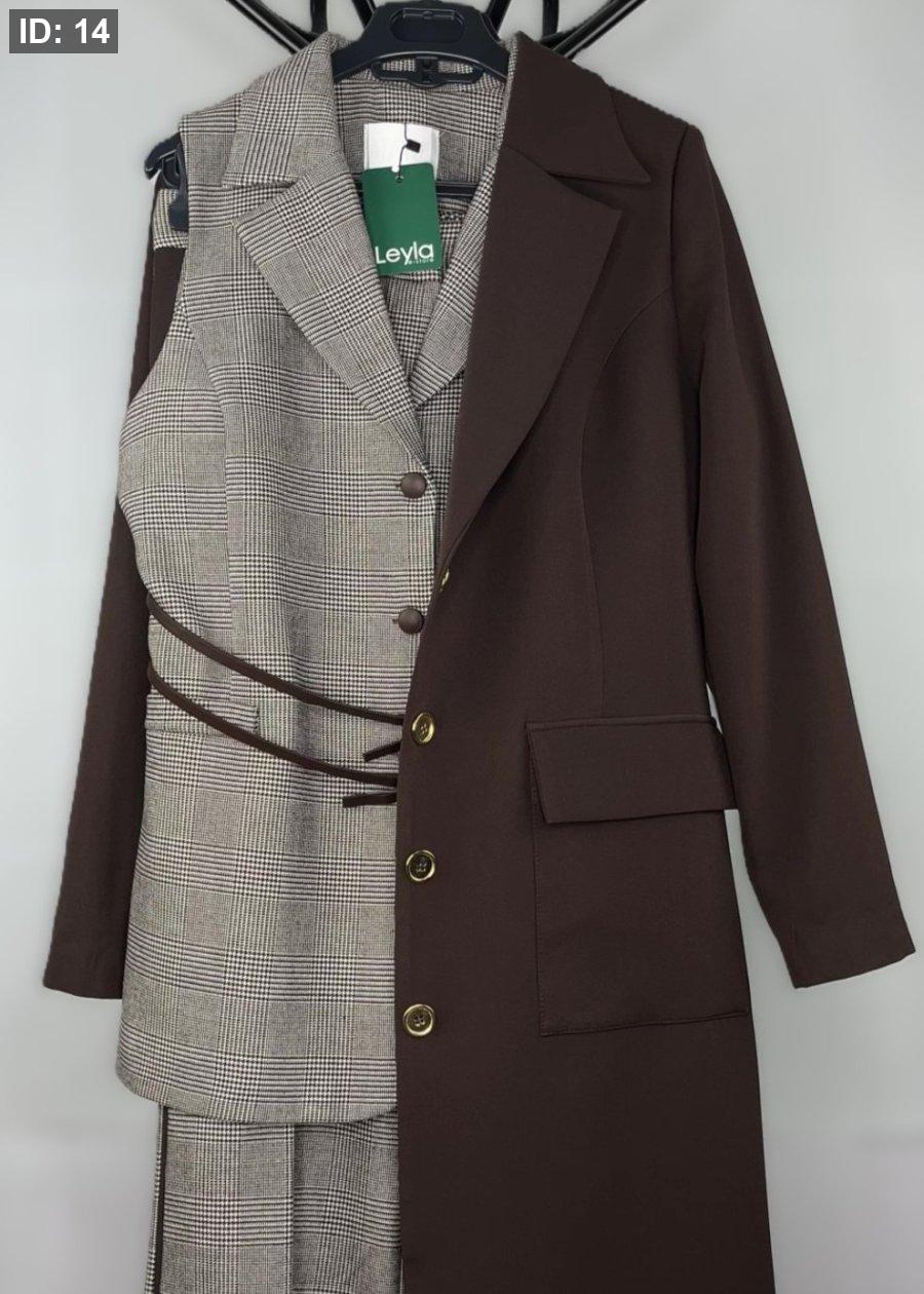 طقم ثلاث قطع ( فزت ، بنطلون ، بليزر طويل )