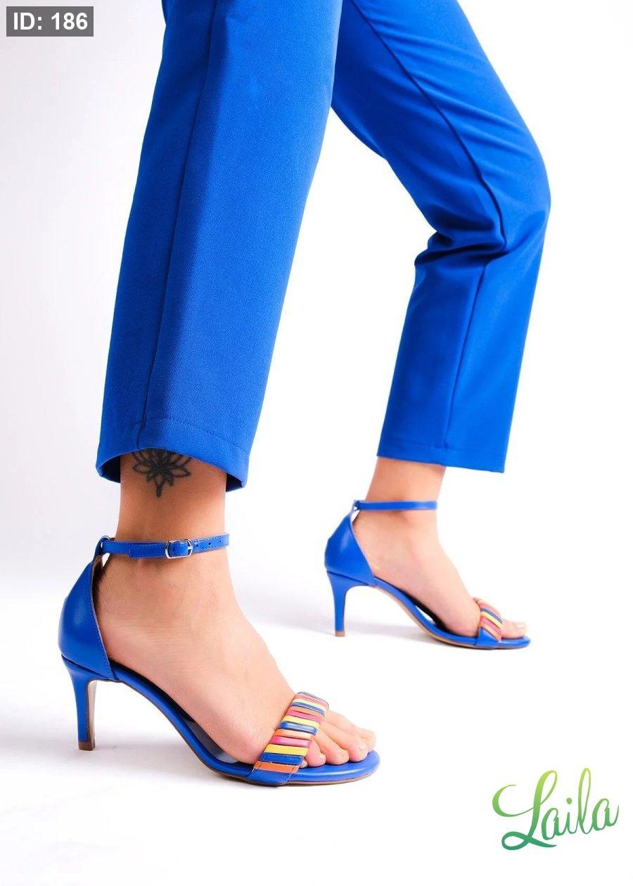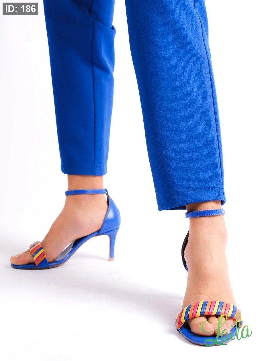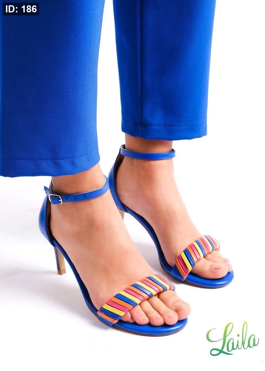 هيلز ازرق بحزام ملون