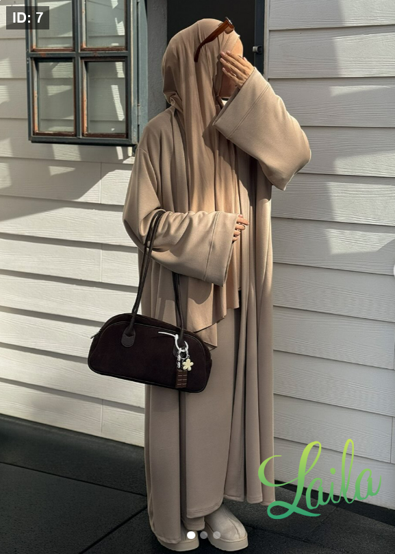 تفاصيل المنتج : فستان بأكمام و عباية خارجية